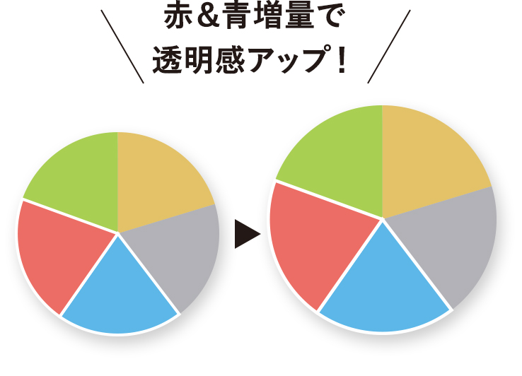 さらに機能性パウダーを強化*1し、パールの配合率を変更することで、パウダーだけでも白浮きせず、キレイな仕上がりが続きます*2。