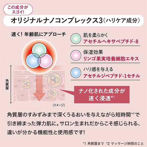 *1 美容液・乳液・化粧水・クリーム・パック・ハリケア *2 乾燥による小ジワを目立たなくする効能評価試験済み