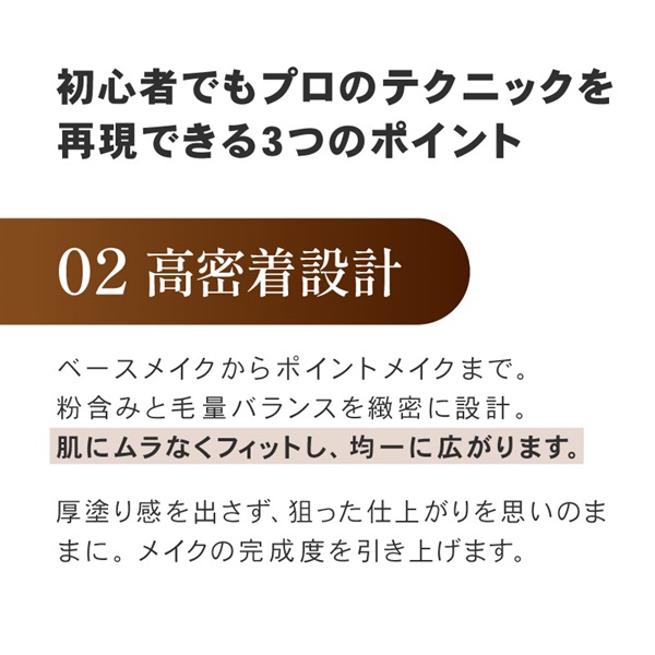 平筆でコシのあるブラシは、水分の多いファンデーションを薄く均一につけることが可能です。