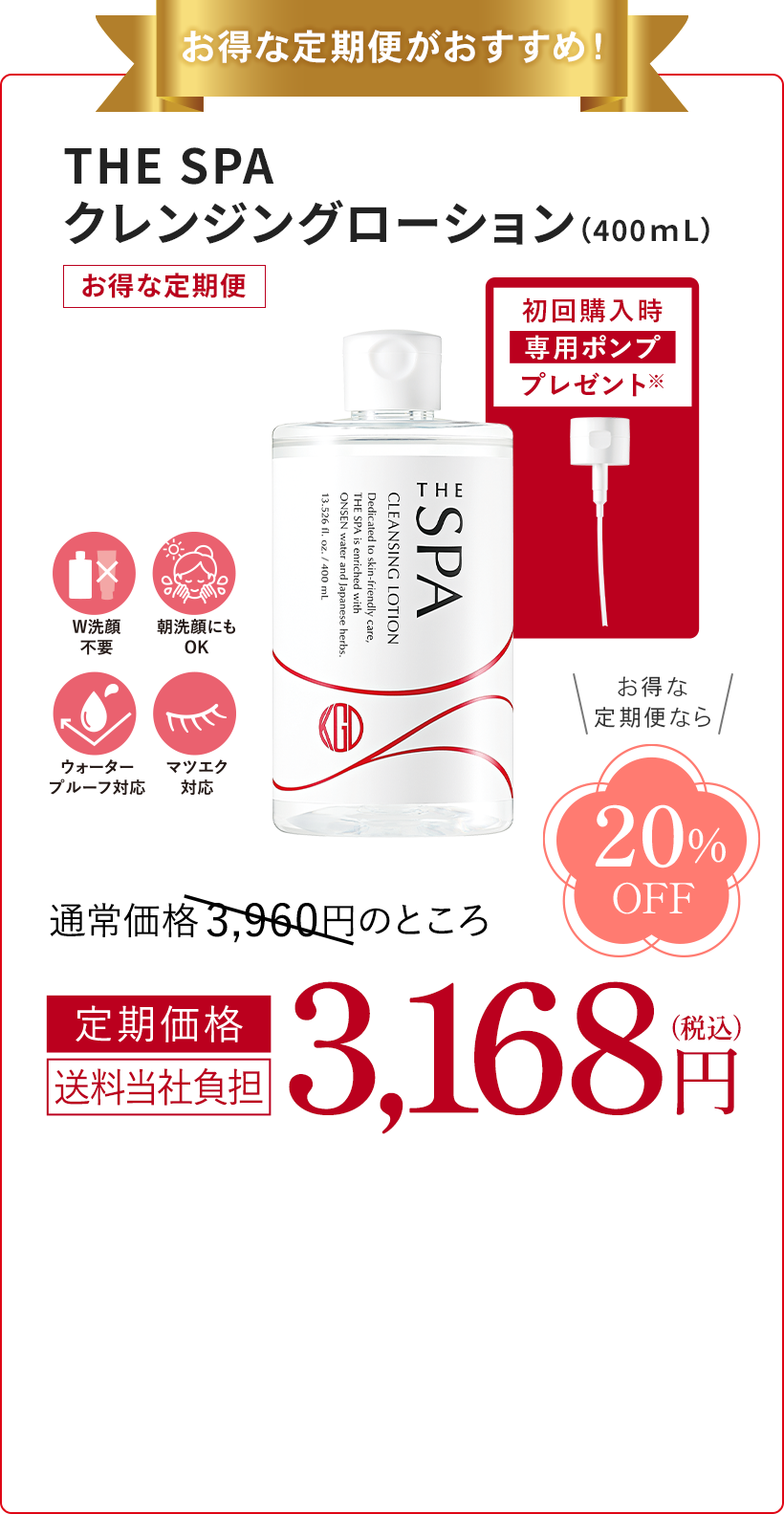 ※専用ポンププレゼント: 初回購入時のみ、お一人様につき1個までのプレゼントとなります。 サイズ違いのものや定期便と同時購入された場合も、プレゼントは1個となりますのであらかじめご了承ください。